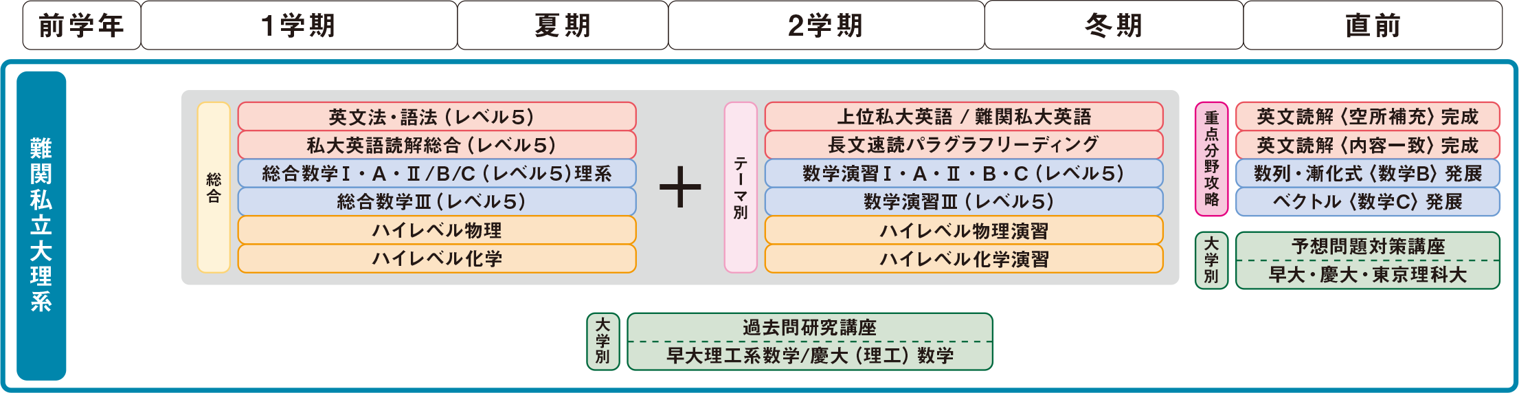 高3生は「第一志望大学合格」へ向けて、不得意分野の克服とともに、得意科目はより高度な学力へと仕上げましょう。応用力、答案作成力など、入試に向けた実戦力を養成するためのキミだけのオリジナルカリキュラムを提供できます。