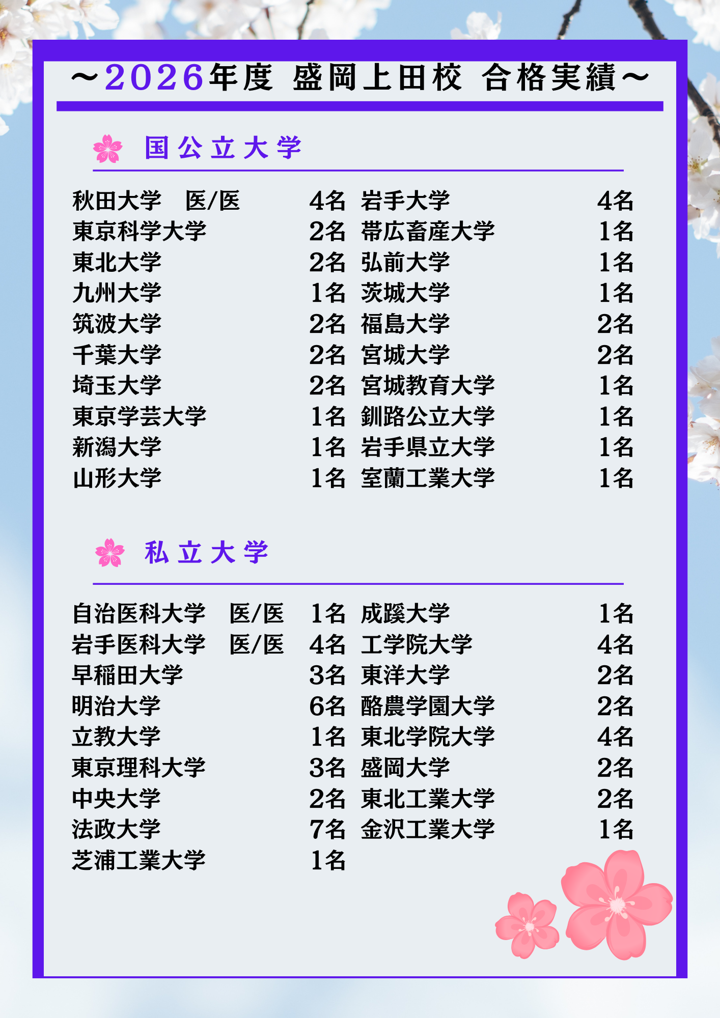 長く努力する癖をつけることができました。三年間継続して努力することで大きく人として成長できたと思います。また、数学の過去問研究講座を受講し、答案作成の力をつけることで苦手だった数学は本番で周りと差をつけるレベルまで実力を高めることができました。