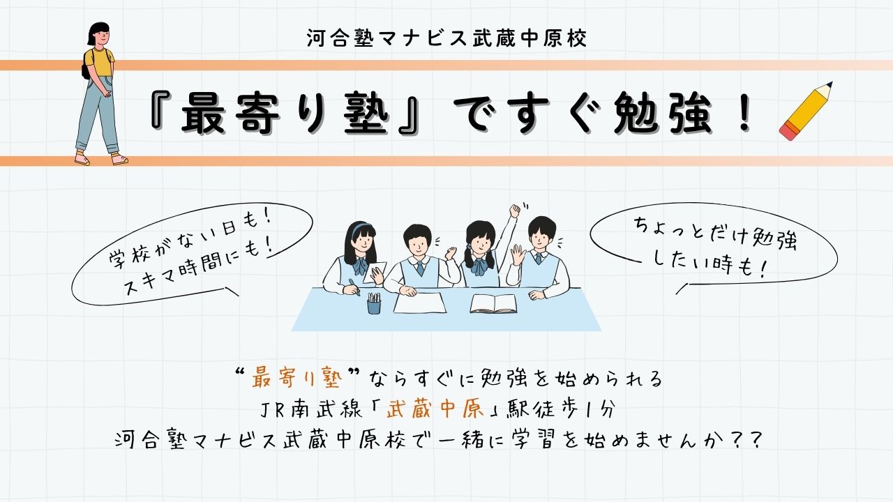 武蔵中原校はJR南武線武蔵中原駅から徒歩1分!アクセスの良さも武蔵中原校の魅力です!