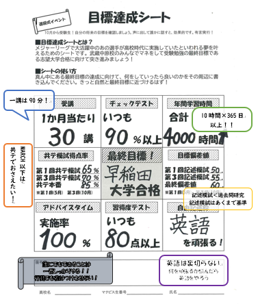 生徒セミナーで目標達成シートを作成しました!