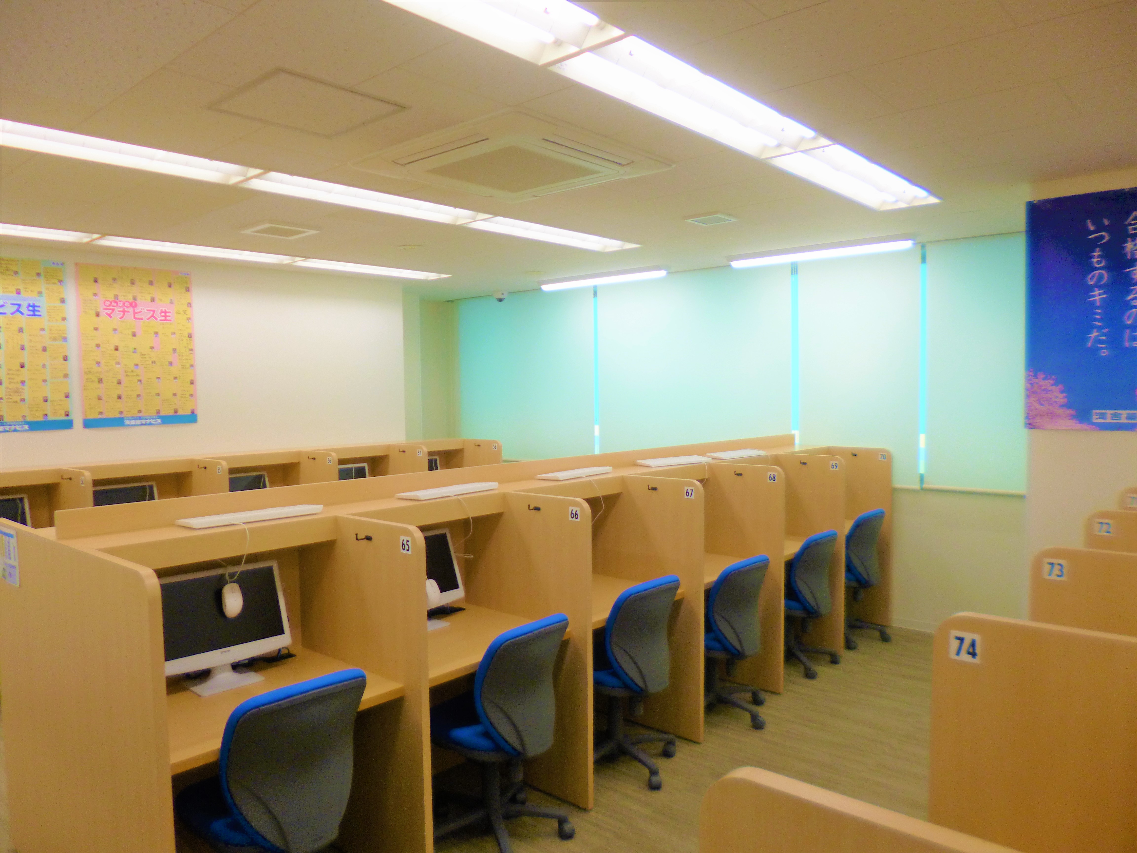 河合塾マナビスの強みはなんといっても時間の制約がないところだと思います。映像授業なので部活の予定等を見ながら自分の行ける時間に塾へ来て学習することができます。さらに授業が中途半端なところで閉館時間をむかえたり、都合上塾に来られない場合は自分のスマホで自宅で受講することもできます。ここもマナビスの良い点だと思います。