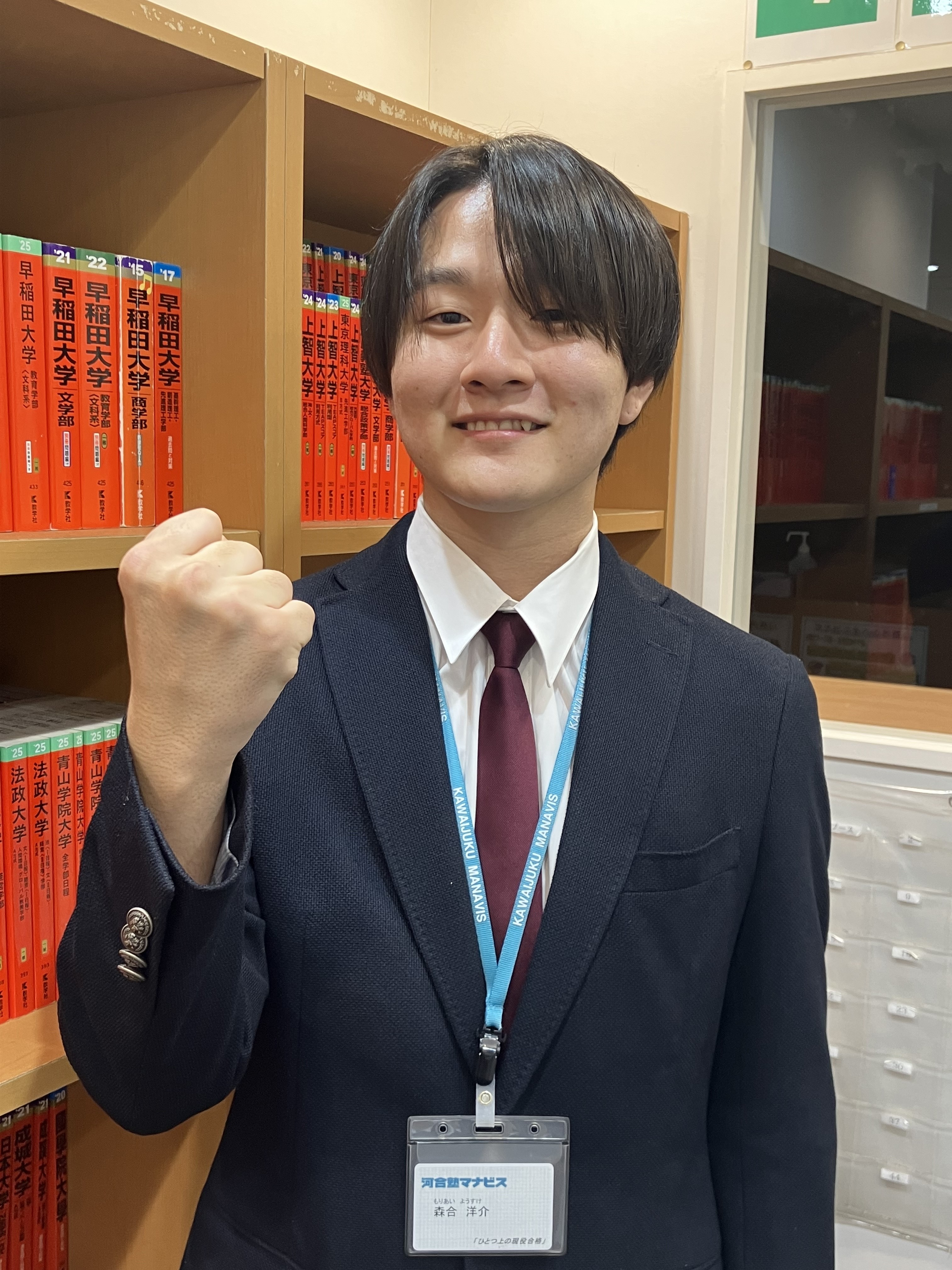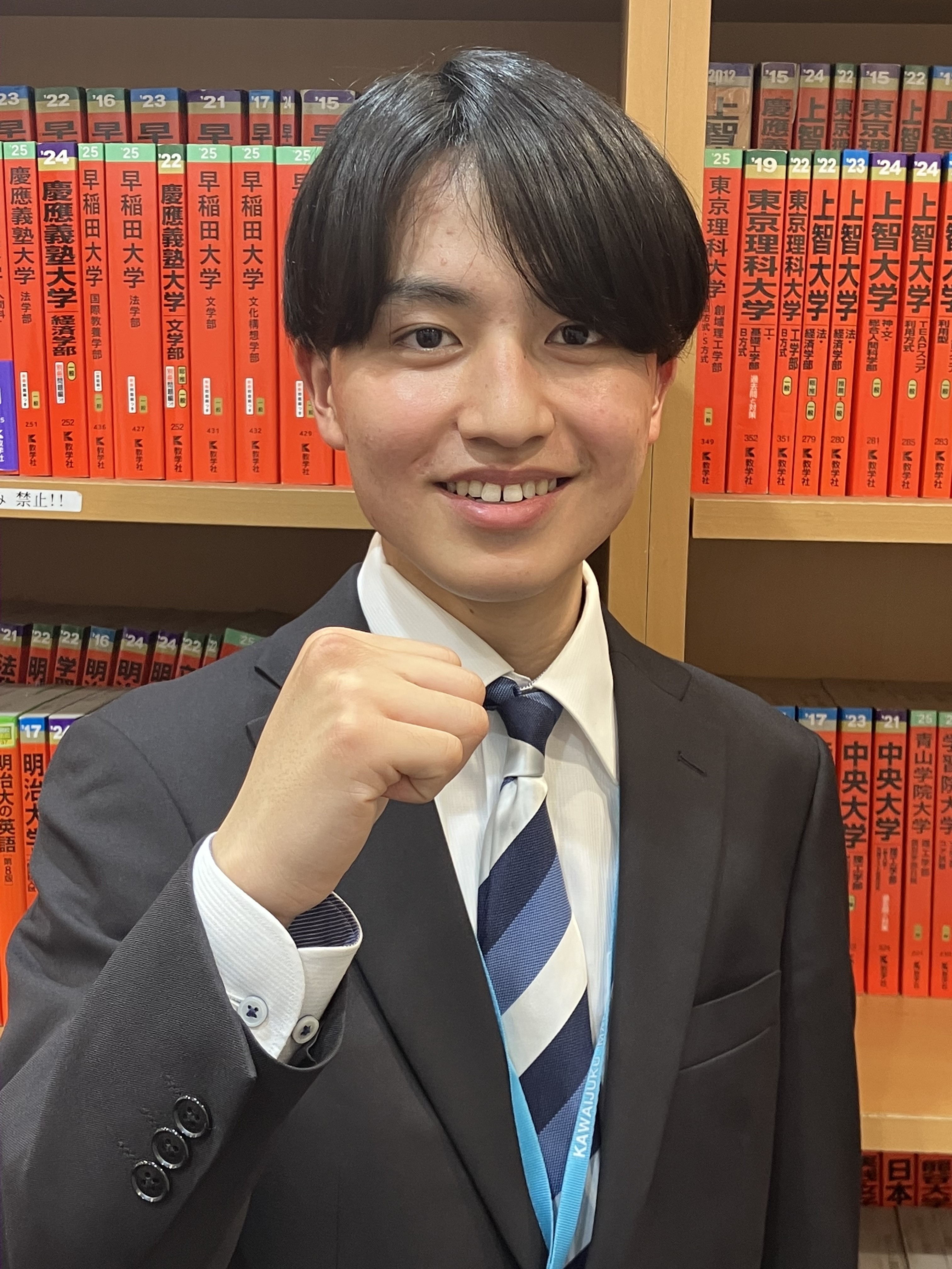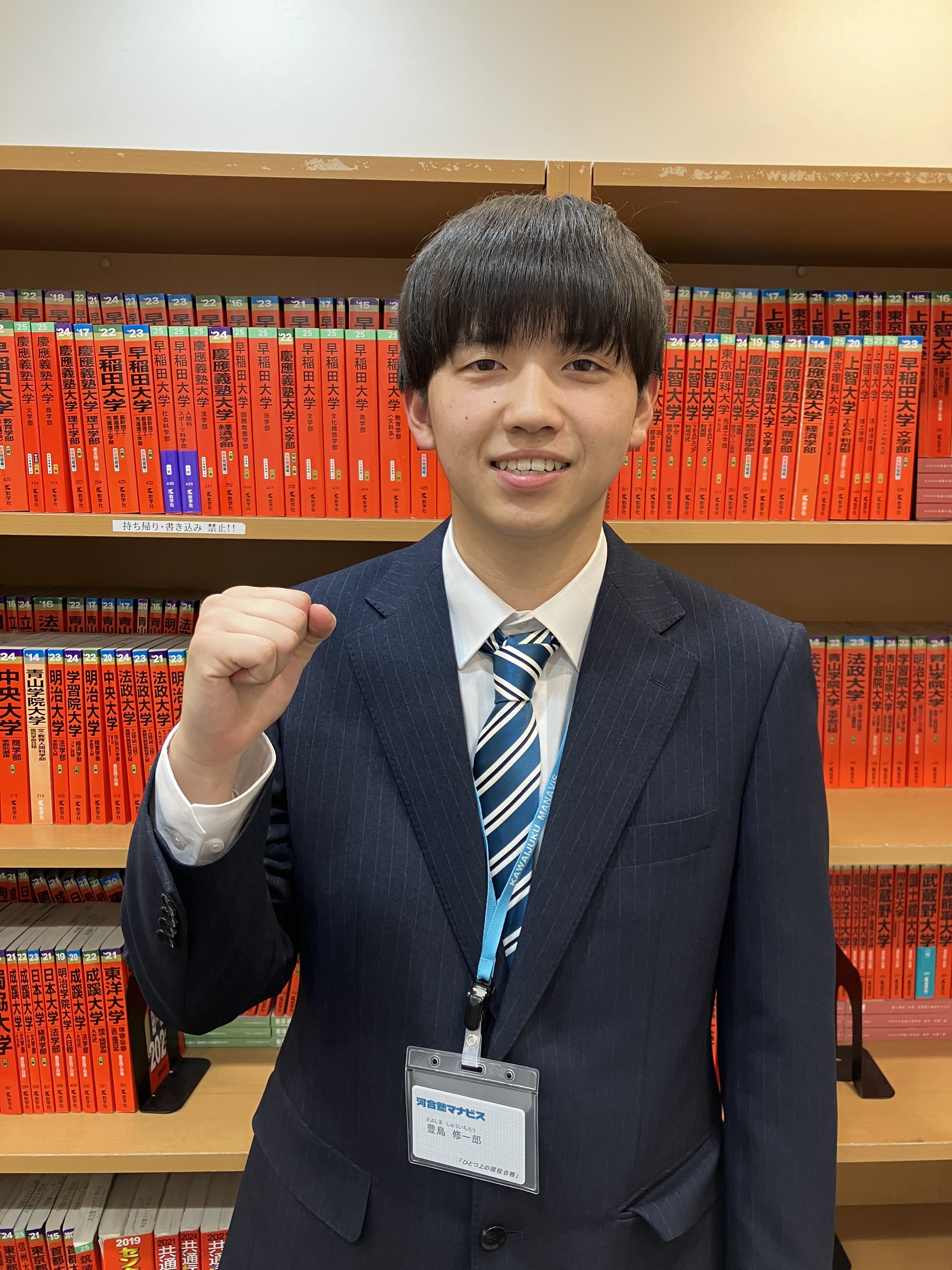 部活動に打ち込んでいて勉強習慣がありませんでしたが、河合塾マナビスに入会してからはアドバイザーの方のおかげで習慣化することができました。また、基礎から学ぶことができたので偏差値を伸ばすことができ、苦手だった日本史は楽しく得意科目にすることができました。