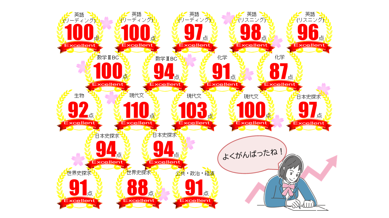 ※1月20日 16:00現在の結果です。 生徒さんの自己採点報告となります。新しい結果が入り次第更新いたします。
