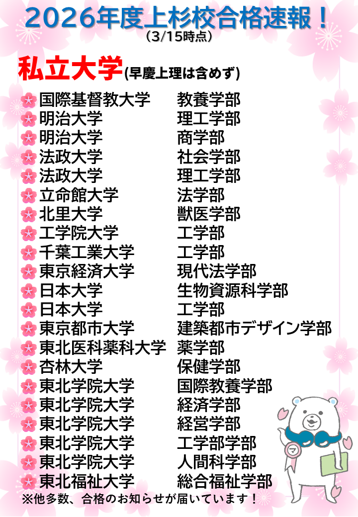 9月まで部活をしていて本格的に受験勉強に力を入れられたのは遅い方でしたが、部活をしながらでも自分の好きなタイミングで受講できるマナビスのシステムにはとても助けられました。また、頼りがいのあるアドバイザーの皆さんには多くのことを教えていただいたり、相談に乗っていただいたりしました。ありがとうございました!