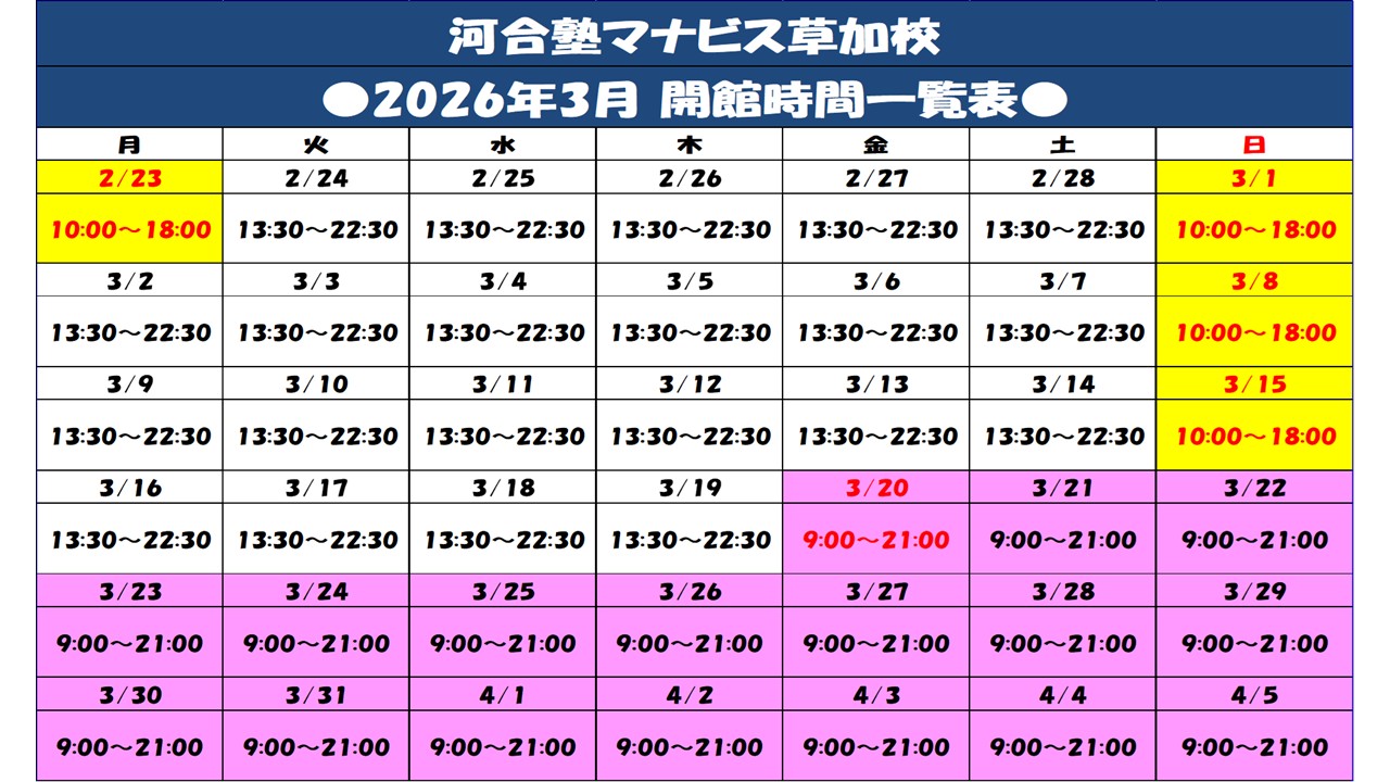 マナビスに通って良かった事は、学習習慣が付けられた事です。草加校は22:30まで開校しているので、平日の部活後でも3時間の学習時間を確保する事ができました。また、何時でも、何度でも受講する事が出来るという映像授業の利点を活用し、学校の授業の進度や自分の理解度に合わせた学習の計画を立てる事が出来ました。