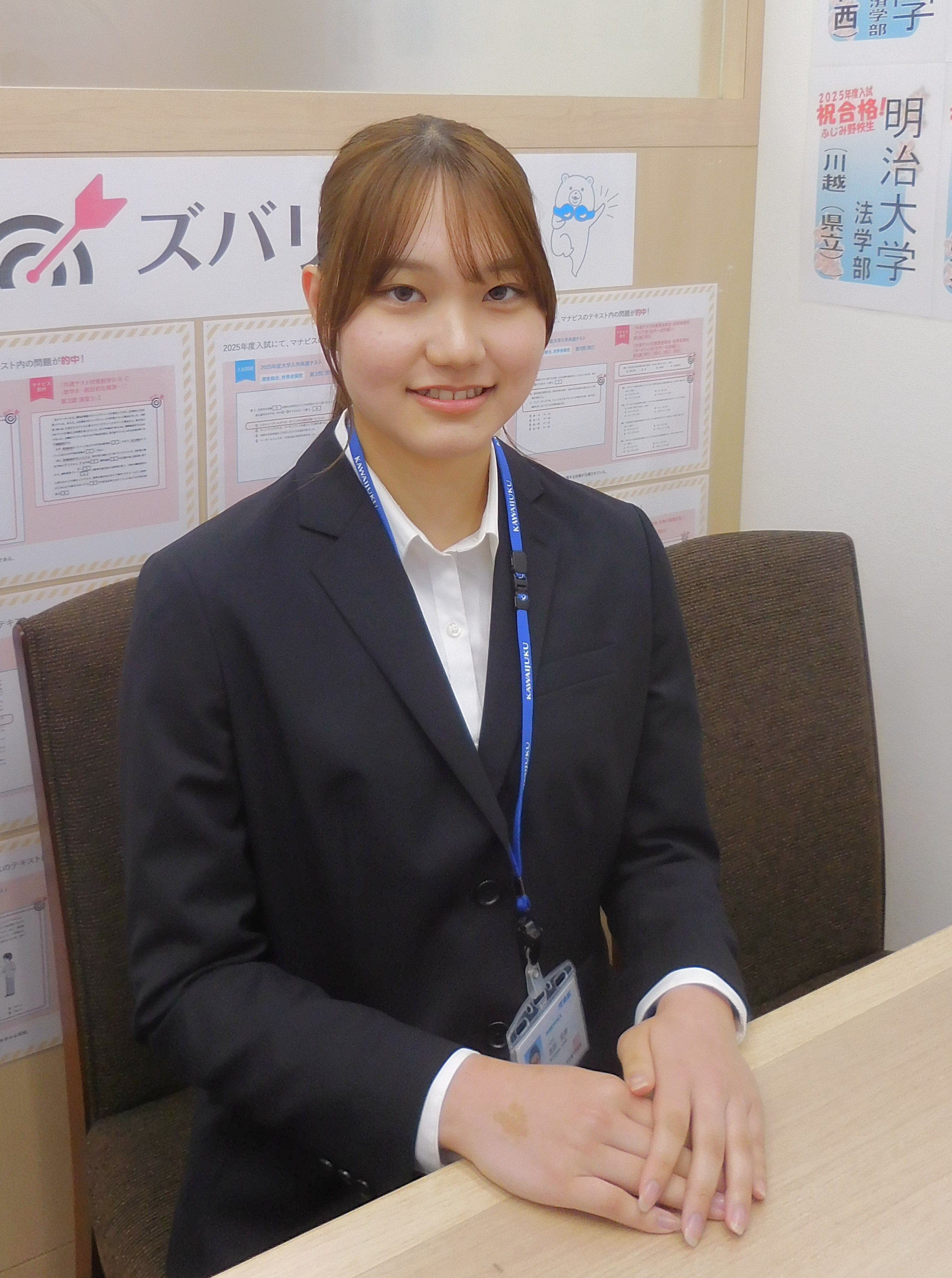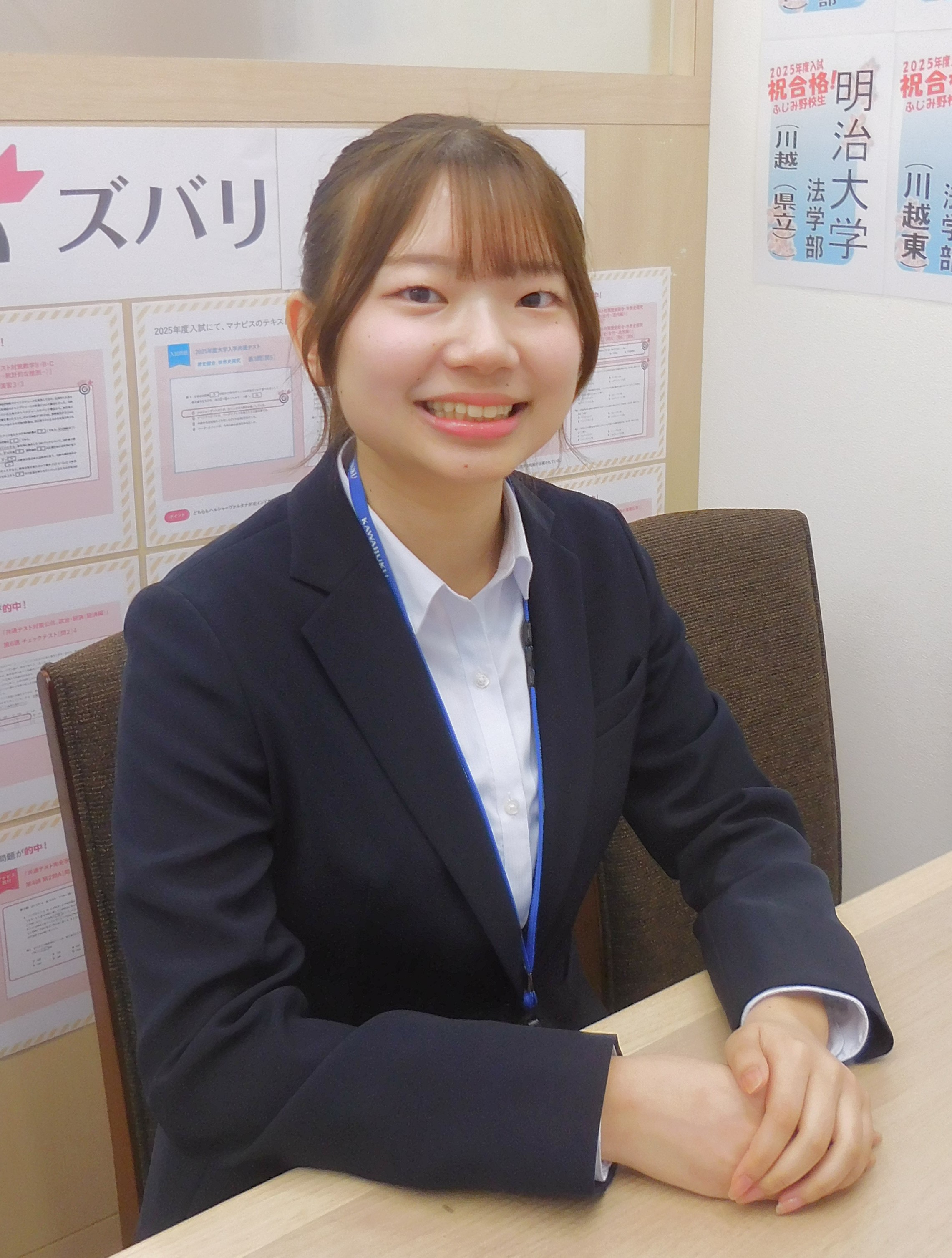 テスト前以外に学習する習慣があまりなかったので、河合塾マナビスに通うことで常にコツコツと勉強し続けることができました。また、自分の好きなときに好きなだけ受講することができるので計画的に効率よく学習を進められました。自分の計画を立てる力も身につけられたので良かったです。
