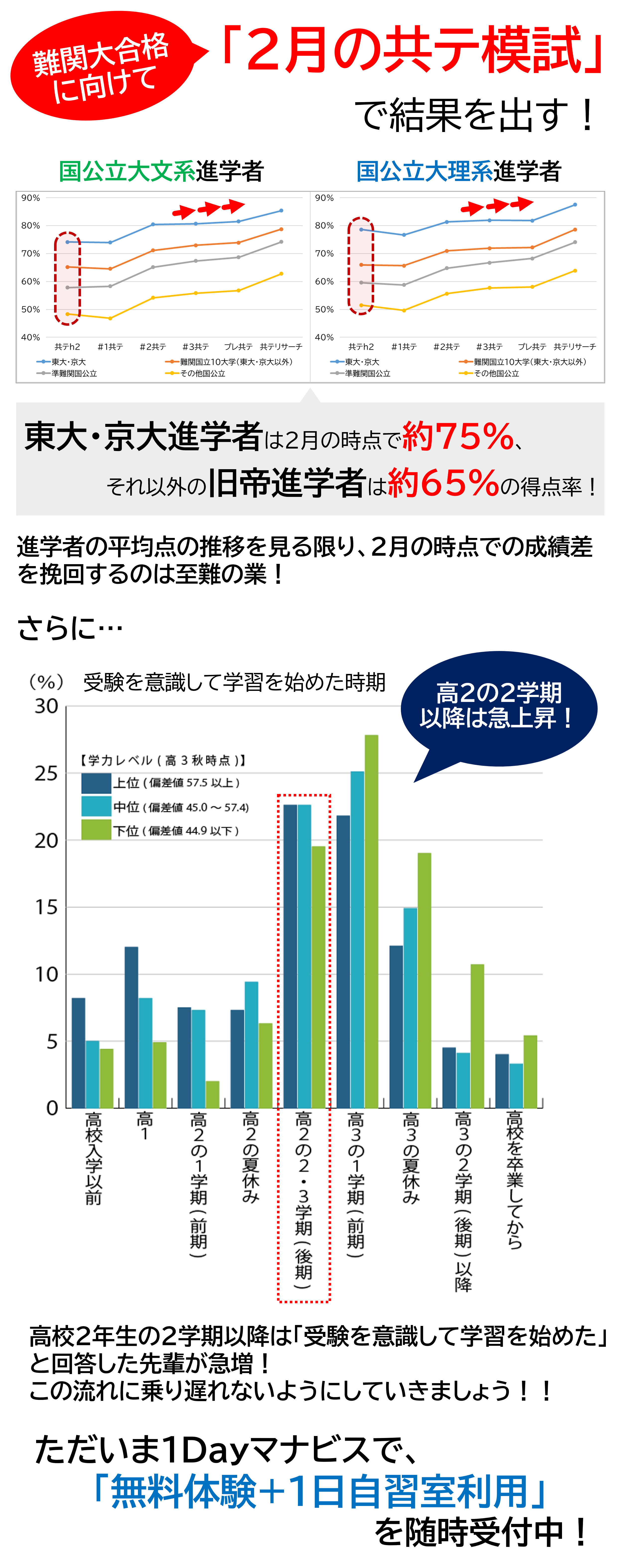 部活を辞めてからの勉強への切り替えがとてもスムーズにできた。2年の夏休みの10時間勉強は部活のない日に予定を入れてやることでなんとか達成できたが、とても辛かった。その経験があったからこそ3年でうまく勉強することができた。河合塾マナビスは特に長期休暇の開館時間が長かったのでとてもありがたかった。伊勢崎校の皆さんはマジで最高です!