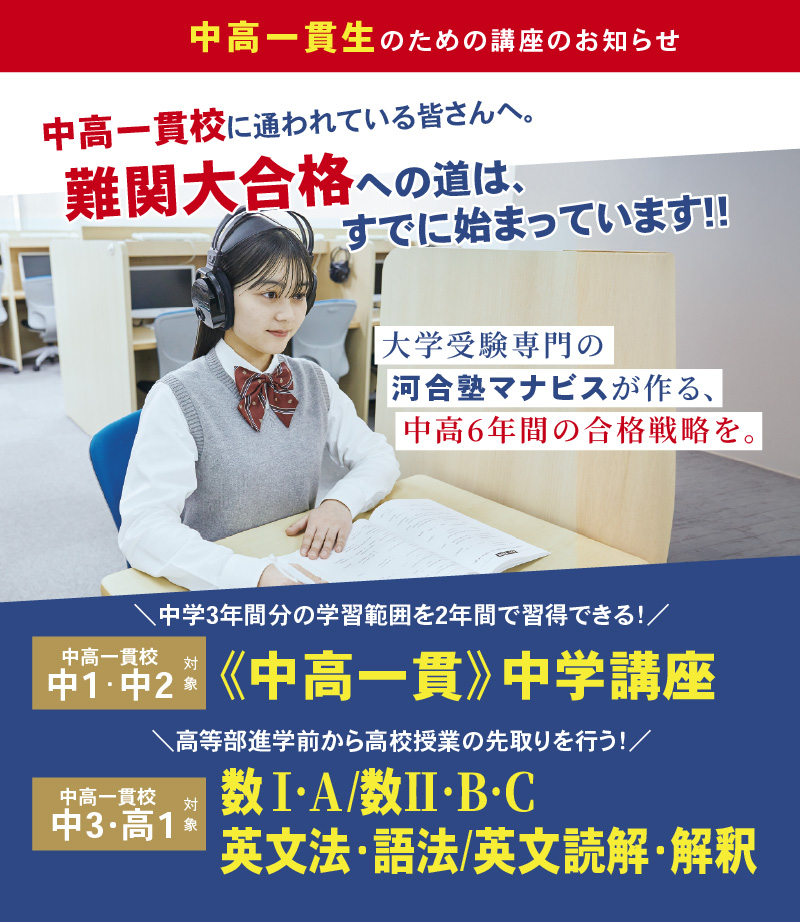 河合塾マナビスでは「中高一貫校の中学生」を対象とした講座を開講しています!
