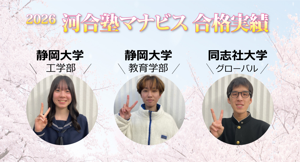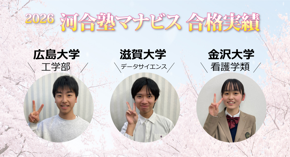高校が変わって、自分だけでどう受験勉強をすれば良いか分からず河合塾マナビスで全てやりきりました。校舎長の支え(面談と月に1回の生徒向けセミナー)と、分かりやすい授業とテキストのおかげで合格!!嬉しいです。