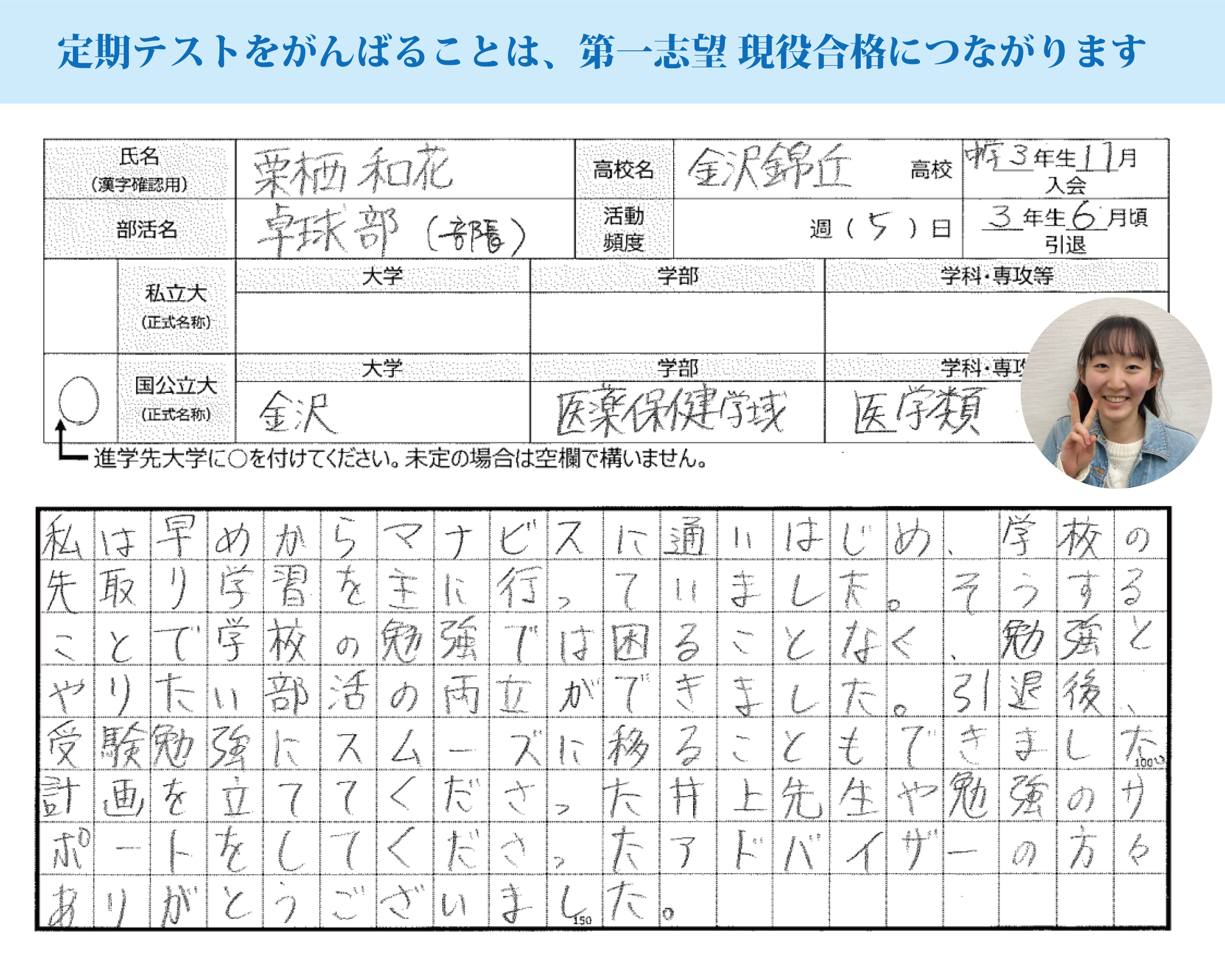 受験生という自覚がしっかり持てたことで学校や模試の成績も上がったと思います。