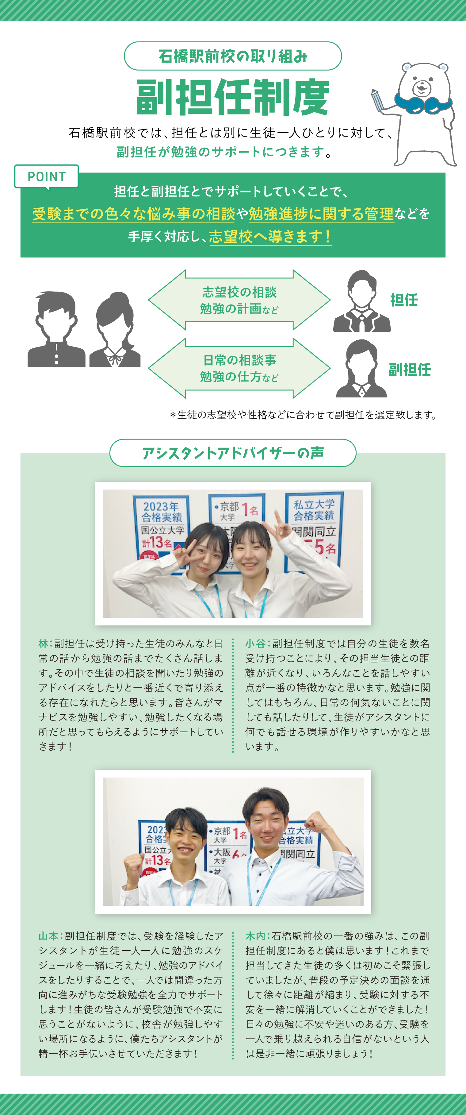 副担任制度のサポート!