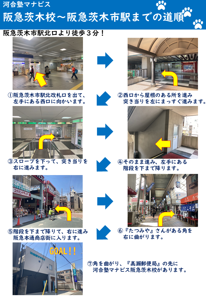 【アクセス】阪急茨木駅から河合塾マナビス阪急茨木校までのアクセス