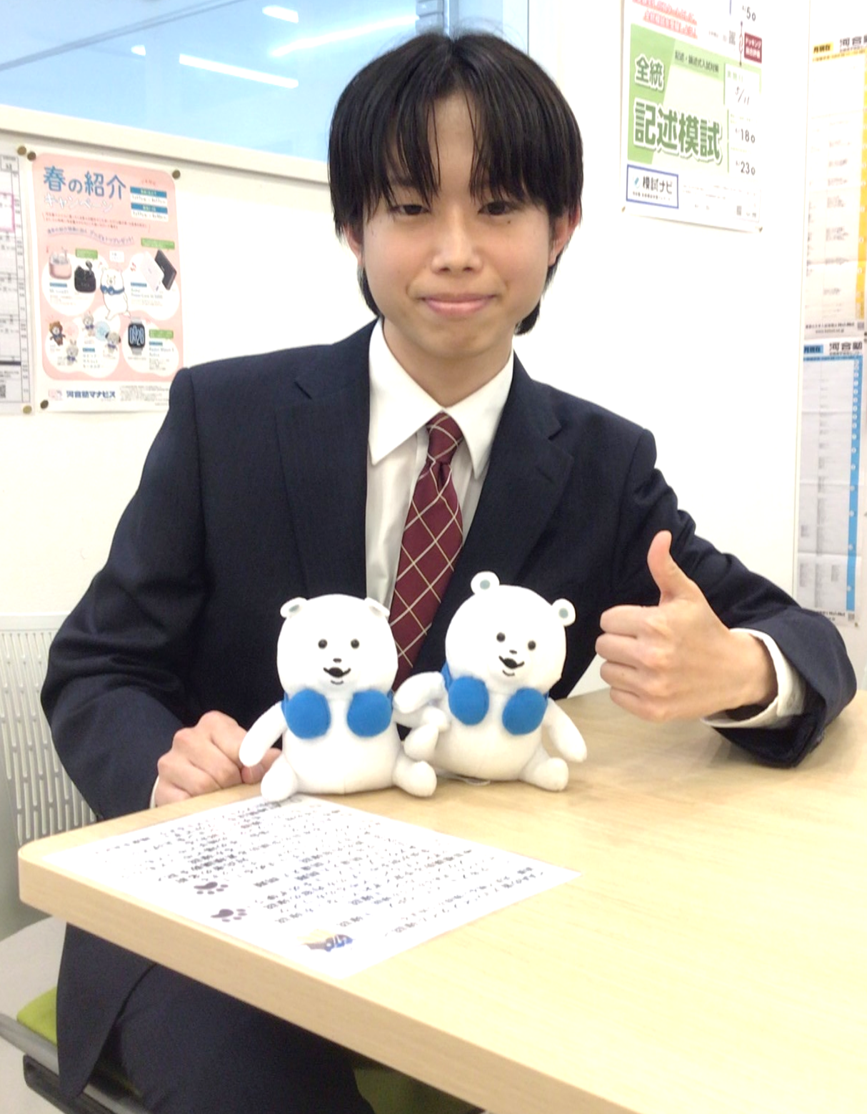 河合塾マナビスでは、月ごとに受講計画を立てるため、計画的に勉強ができなかった僕にとってはぴったりな塾でした。また、授業はすべてが非常にわかりやすく、受講ごとに成長を感じました。受講後のアドバイザーとの会話では、弱点を簡単に見つけることができました。また、相談など親身に聞いてくださり、日々のモチベーションの向上になりました。