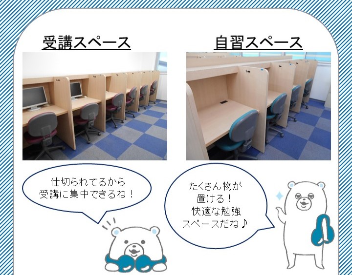 単元ごとに映像授業が細かく分かれているため、自分の苦手な分野を受講することで理解できるようになり、勉強の質を高めることができました。また、教室内もしっかりと集中できる環境が整っているので、ストレスなく勉強することができました。