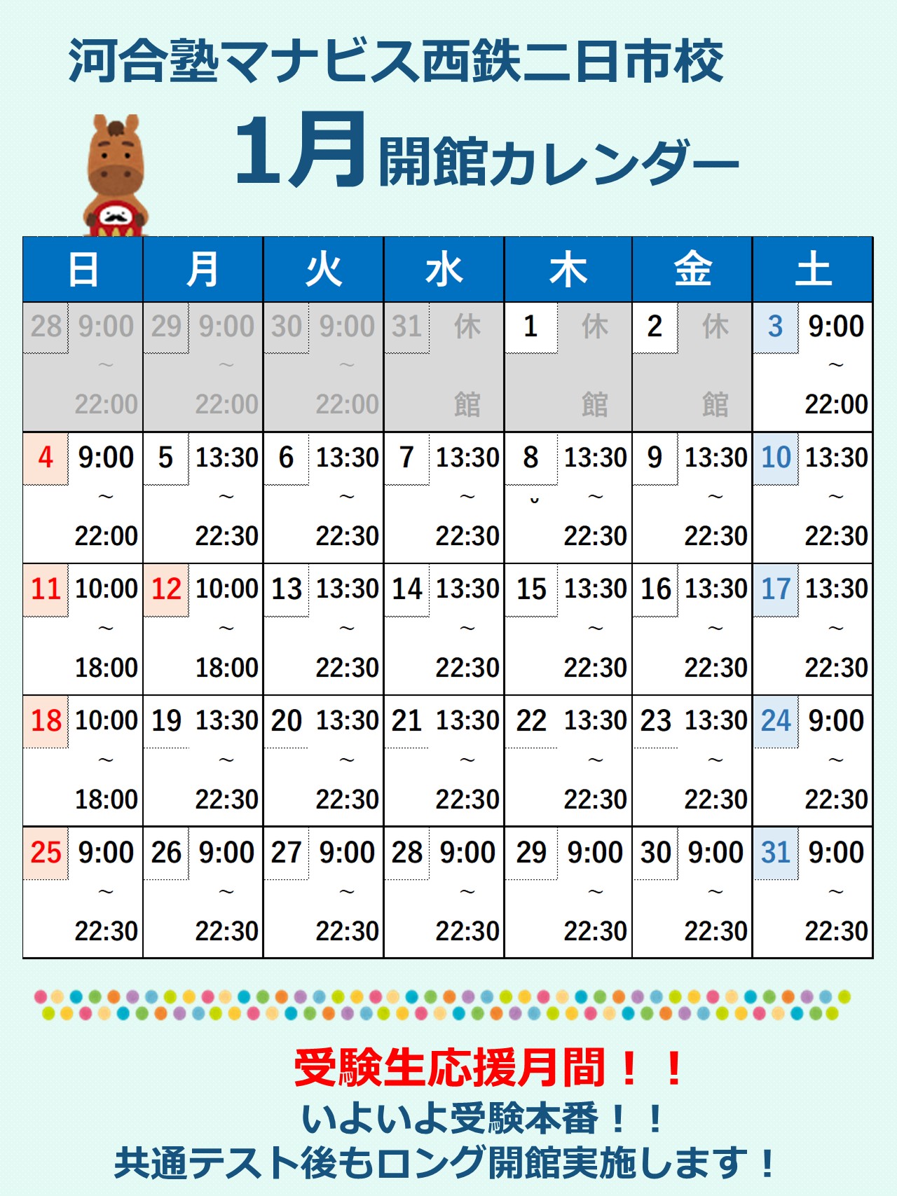 1月 開館カレンダー