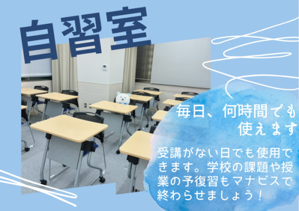 長期休みだけでなく、平日にも夜遅くまで授業ブースや自習室を利用することができました。自宅での学習が難しい自分でも、静かな自習室の環境を用意してくれたことで集中できました。自習室だけでなく興味を抱いた講座には主体的に取り組むことができるシステムがあったことも良かったです。