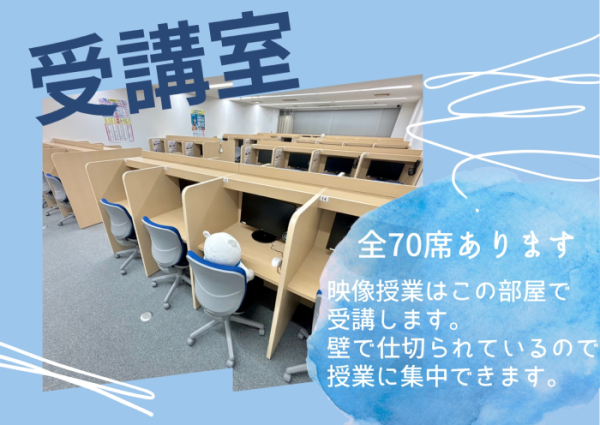 映像授業のため、倍速で見たり、家での再受講が可能なので、自分の計画に合わせて学習を進めることが出来ました。また、仕切りがあり、静かなブースでは自習も出来るので、高い集中力で自分のしたい学習に取り組めました。