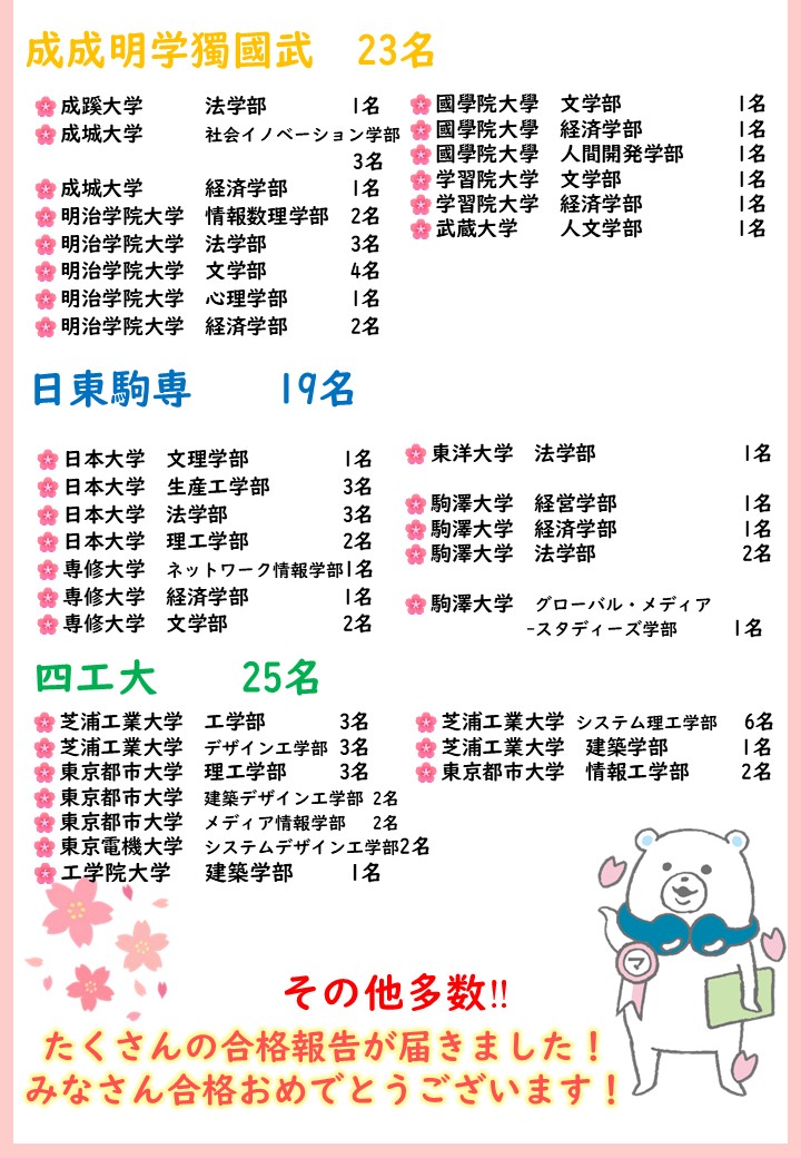 共テ演習を始めたあたりから優先的に記憶するべきものは何か少しずつ分かってきて、そのおかげで日本史は7割取れ、苦手だった英語も平均くらいとれるようになりました。そして何より勉強が好きになりました。