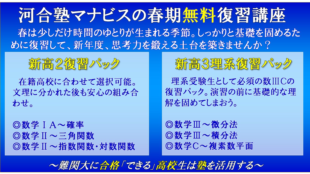 河合塾マナビス黒髪校~春の難関大対策のご案内