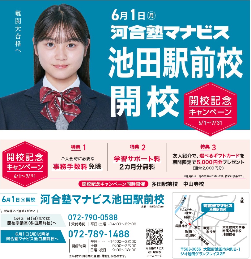 その成長や第一志望校合格という結果を河合塾マナビス池田駅前校で一緒に手にしましょう!
