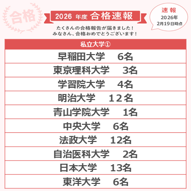 AO入試Ⅱ期では11月に数学・物理・化学・英語の筆記試験があり、高校のすべての中身が試験の対象だったので、特に有機化学を予習したいと考え、入会しました。